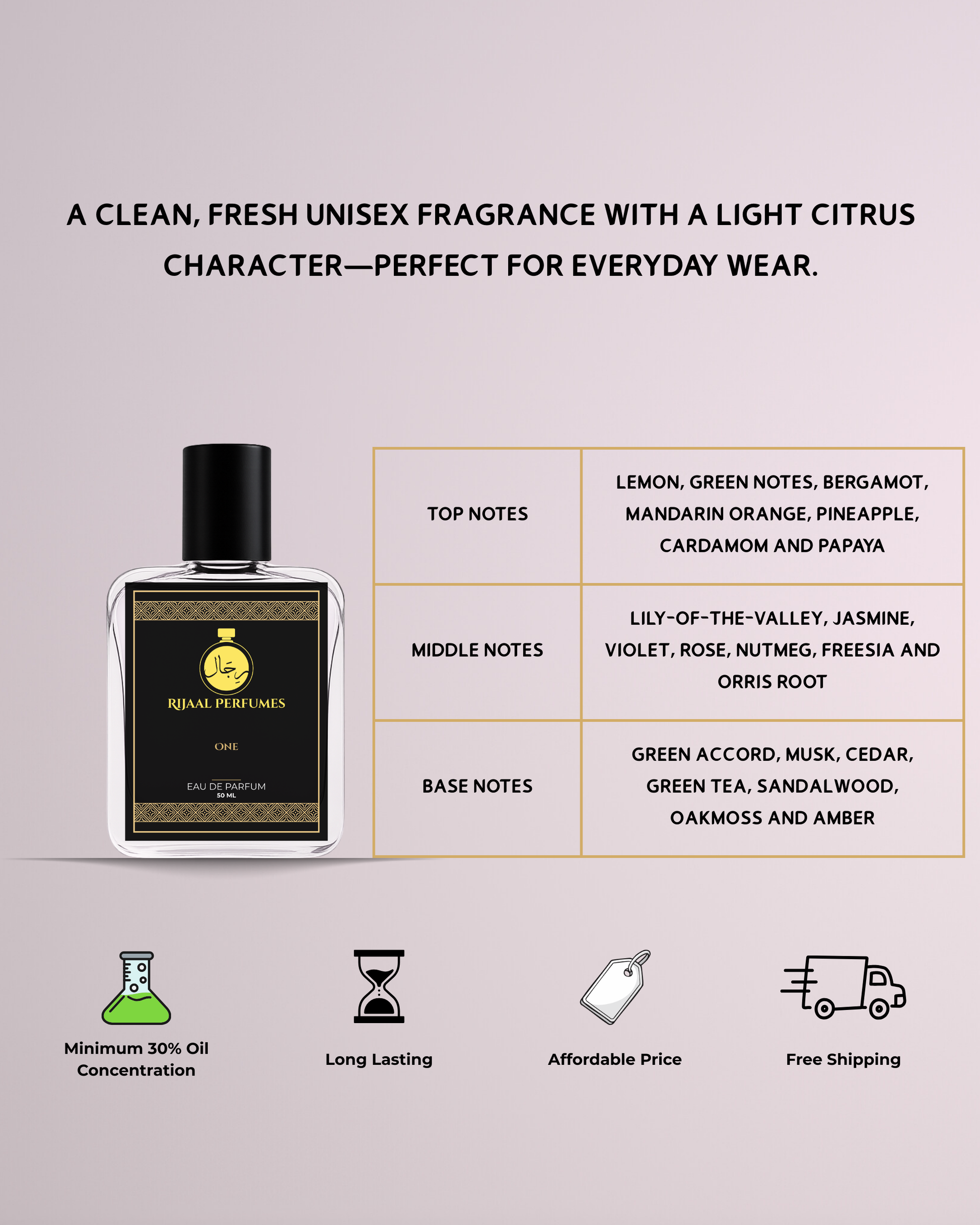Concentration: 30% (Due to the higher concentration level, it is recommended the fragrance is given time to settle, as it is the heart notes and the lingering base notes that lives with you.)